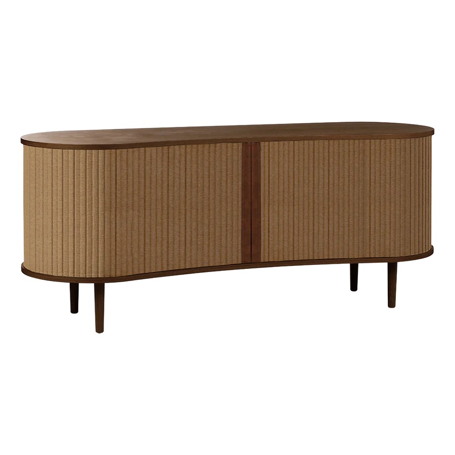 Le buffet Audacious réinvente le rangement avec une touche de luxe nordique. Sa silhouette courbée et ses portes tambour en tissu mélangent nostalgie et modernité, apportant chaleur et fluidité à tout espace. Avec des étagères ajustables et des ouvertures discrètes pour vos équipements, il combine esthétique et fonctionnalité. Les portes tambour interchangeables permettent de renouveler son style sans acheter un nouveau meuble, allongeant sa durée de vie et préservant les ressources.