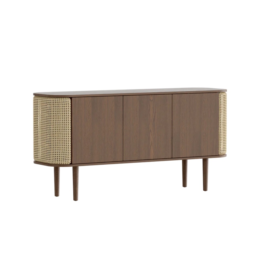 Inspiré du design nordique, Treasures est un buffet en chêne plaqué aux lignes douces et élégantes. Ses côtés incurvés, personnalisables en rotin, cuir synthétique ou textile recyclé, s’ouvrent comme des ailes pour révéler un espace de rangement raffiné. Les portes sont interchangeables, vous permettant de faire évoluer le style du meuble tout en préservant les ressources.