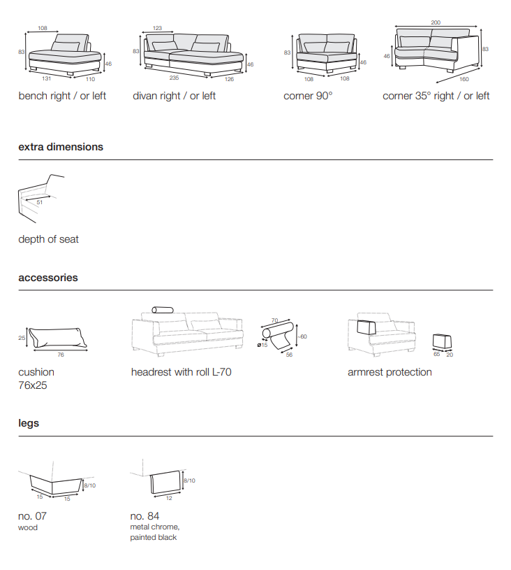 Issue de l’association entre le confort et la simplicité agrémentés d’une touche de modernité, la forme simpliste de Brandon constitue un point de départ. Vous pouvez choisir le modèle basique et en faire une pièce aussi confortable qu’élégante. Vous pouvez également aller plus loin et concevoir votre propre canapé modulable. Vous pouvez aussi opter pour un module spécialement créé pour apporter des courbes légères et attirantes.