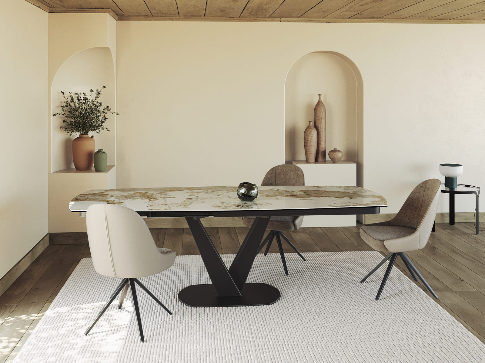 La chaise Miami avec assise pivotante allie style contemporain et praticité. Son design fluide et épuré s’accompagne d’un système pivotant discret, idéal pour un usage quotidien autour d’une table ou dans un espace de travail.