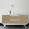 | Des finitions idéales | Association chaleureuse entre le métal et le chêne (plaquage chêne). Les glissières des tiroirs sont freinées. |