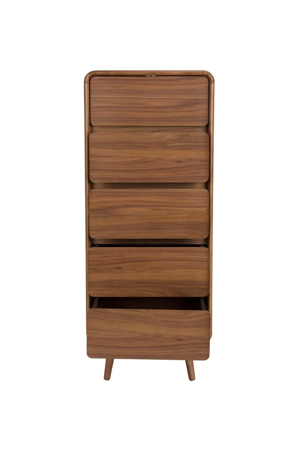 La commode surélevée Zuiver en noyer incarne l’élégance rétro revisitée. Avec ses pieds fins qui allègent la silhouette et sa finition noyer chaleureuse, elle apporte une touche de raffinement naturel à votre intérieur.