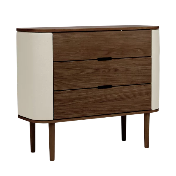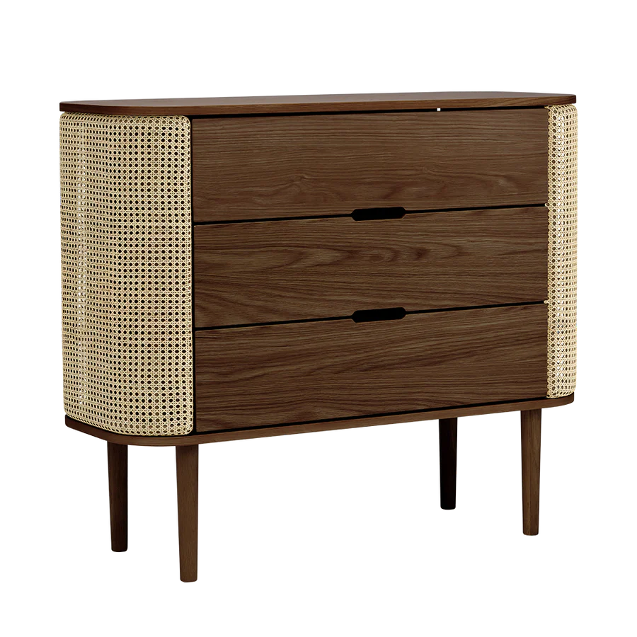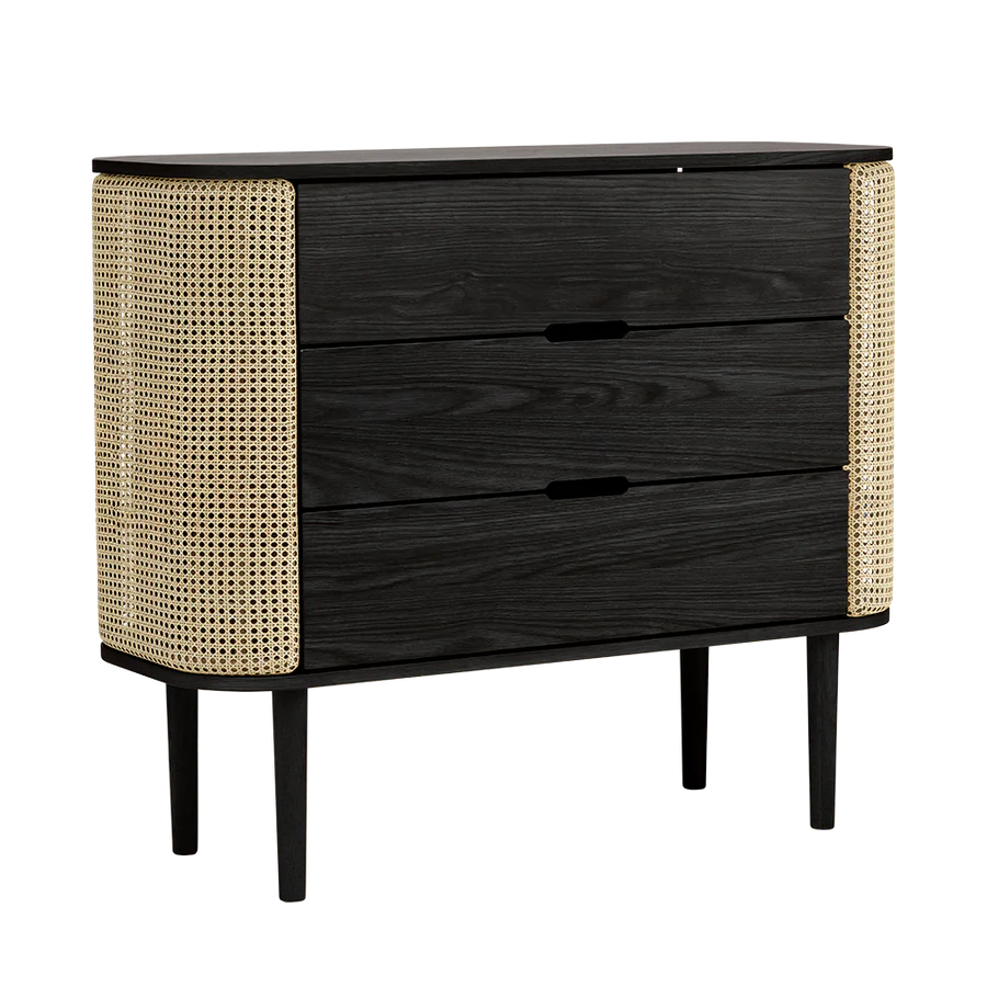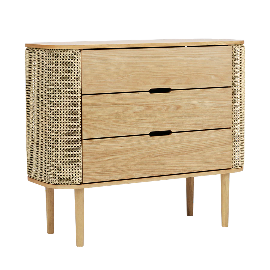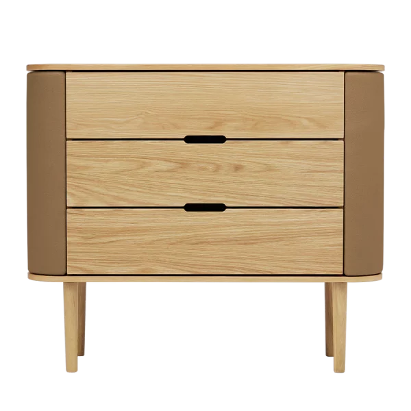 La commode Treasures de Umage allie un design scandinave minimaliste à des détails délicats et chaleureux. Ses lignes douces et sa structure en bois évoquent une esthétique naturelle et intemporelle, tandis que ses portes courbes en tissu ajoutent une touche de légèreté et d’originalité.