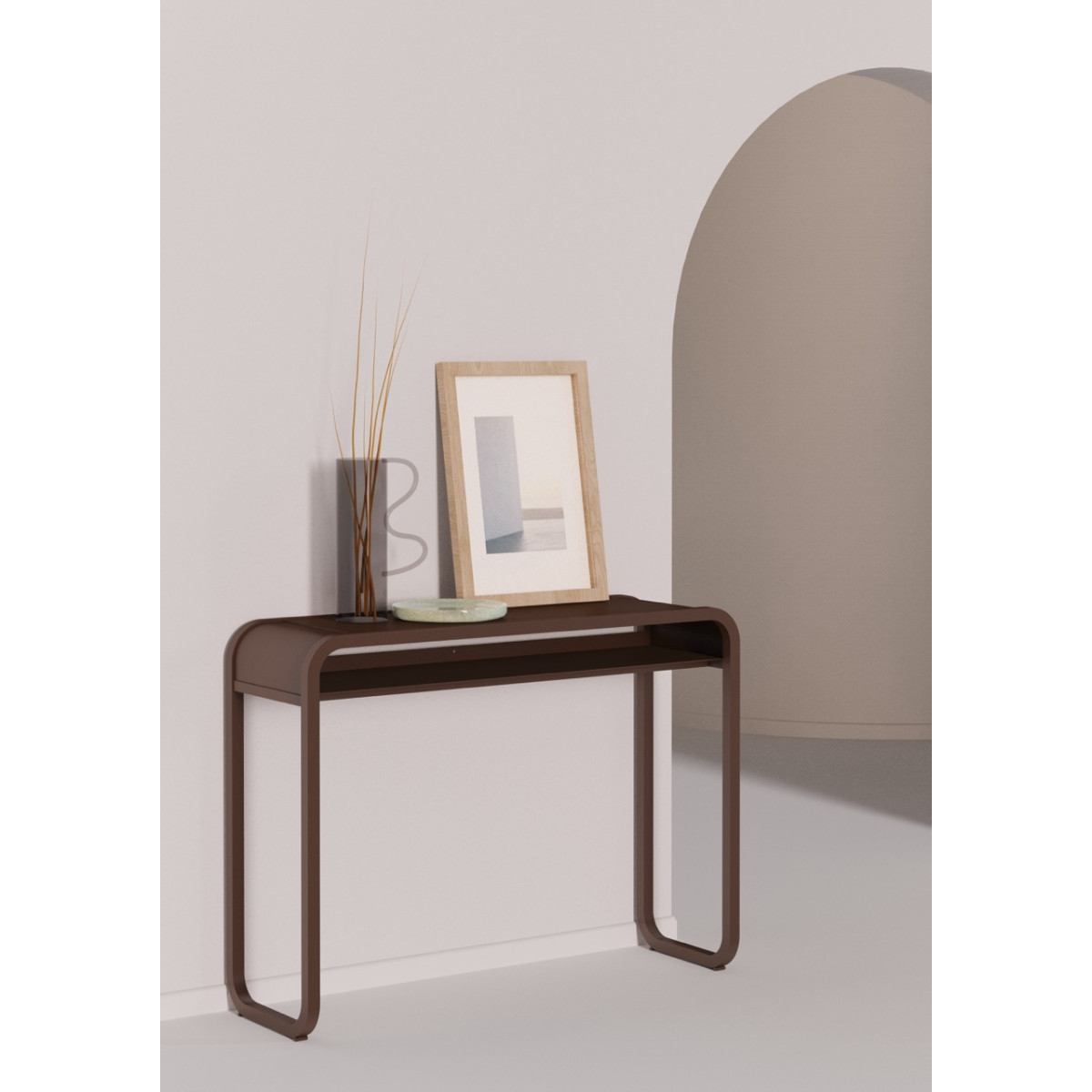 La console Léon est proposée en acier thermolaqué de couleur noire, brun, ivoire ou bronze.
