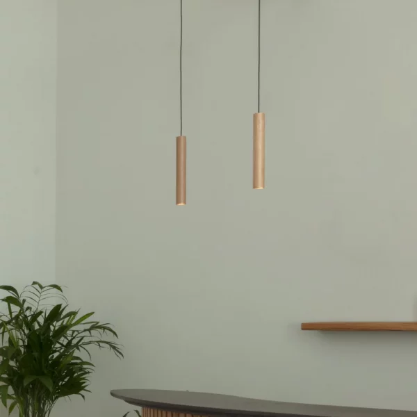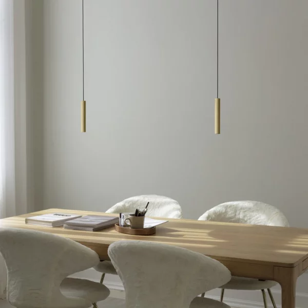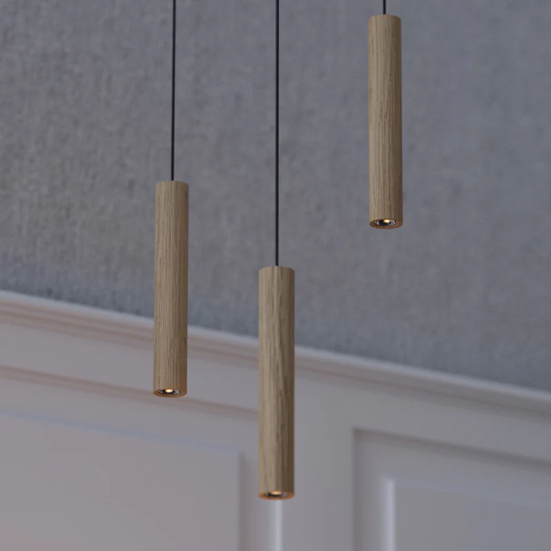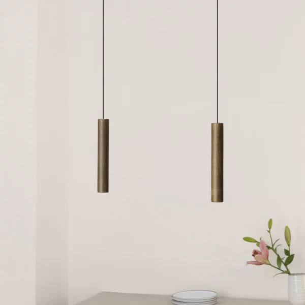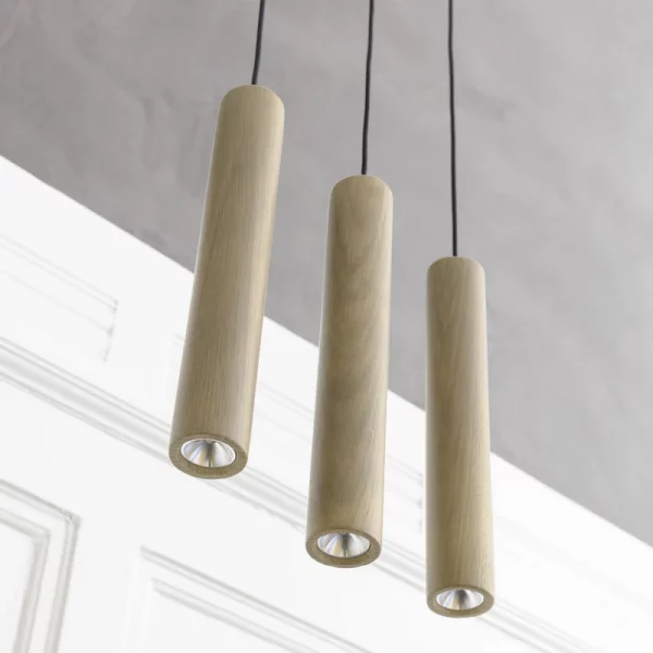 La suspension Chimes de Umage se distingue par sa forme élancée et son design épuré, inspiré des troncs d’arbres scandinaves. Fabriquée en bois massif, elle incarne l’essence du minimalisme tout en offrant un éclairage directionnel doux et chaleureux.