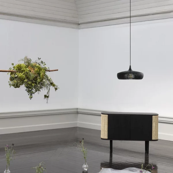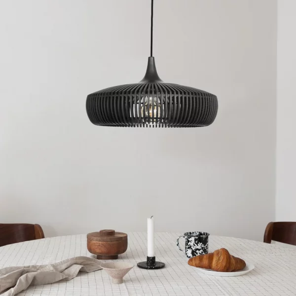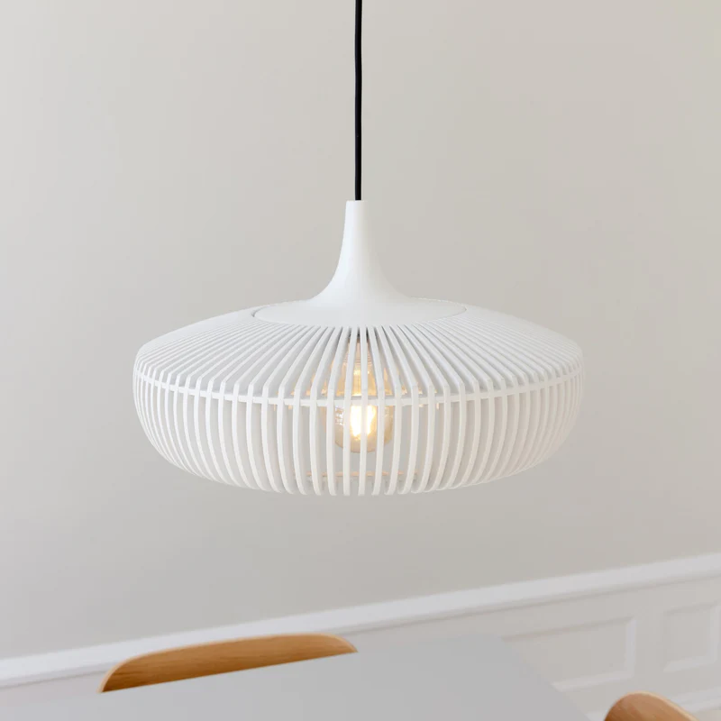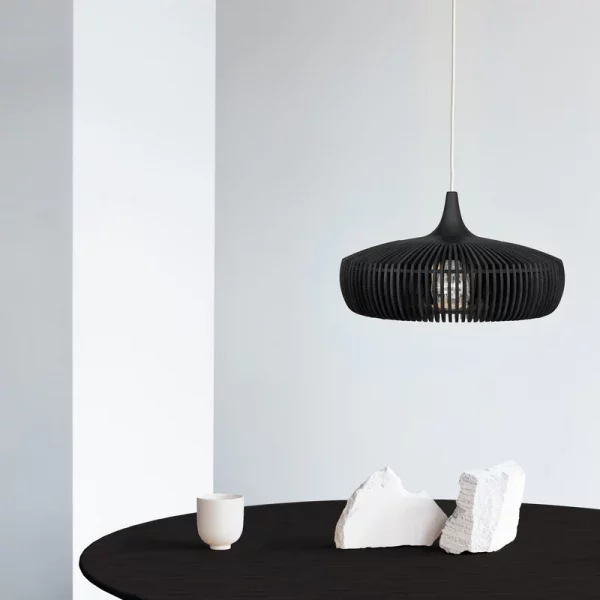La suspension Clava Dine Wood de Umage revisite le design iconique de la Clava Dine avec une touche organique et chaleureuse. Fabriquée à partir de fines lamelles de bois courbées, elle projette une lumière douce et poétique, créant des jeux d’ombres élégants sur les murs.