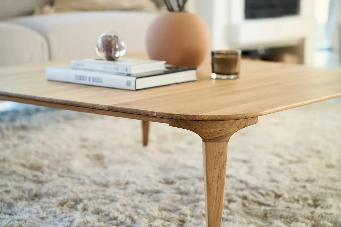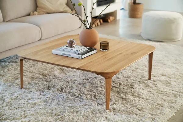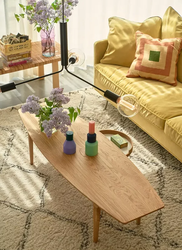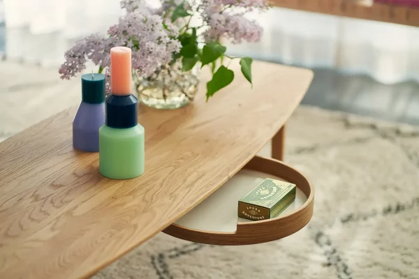 Une table en bois accompagnée d’une touche de légèreté. Elle peut également accueillir un plateau pour toutes les choses que vous souhaitez garder à portée de main.
