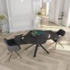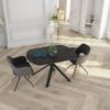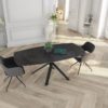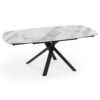 Kheops est la table de repas, de 130 cm de longueur, parfaite pour les adeptes de décoration moderne, chic et contemporaine. Pratique par son système synchronisé, elle s’ouvre tout simplement en pivotant son plateau central ce qui vous permet d’obtenir une table de 190 cm en un instant. Vous ferez entrer la lumière grâce à son plateau en céramique marbre blanc, de 3 mm d’épaisseur, collé sur un verre de 8 mm. Kheops est réellement solide et facile d’entretien. Sa stabilité est assurée par son piétement raffiné et original en acier laqué noir mat. Disponible aussi en 120/180 cm, elle est idéale pour la cuisine, une petite salle à manger ou encore dans une décoration minimaliste.